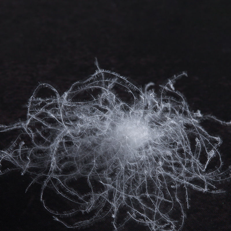 A kiváló minőségű fehér libák hasáról, nyakáról és szárnyaikról vett természetes pehely olyan háromdimenziós fürtözött formát mutat be, mint a virágzó nádbarka, aranymetszetet alkotva a pelyhes tollakkal. Ritka állati fehérje rostként minden libapehely szálat milliónyi mikro háromszög alakú pórusszerkezet borít. Ezek a precíz pórusok olyanok, mint az intelligens hőmérséklet-szabályozó egységek, amelyek mikron szinten állíthatók a környezeti hőmérséklet változásaival, hogy dinamikus ciklusú hőmérséklet-szabályozó hálózatot építsenek ki. Amikor az emberi test által természetesen kibocsátott meleg lehelet érintkezik a pehelyréteggel, a pórusszerkezet azonnal működésbe hozza a hőelnyelő mechanizmust, és többdimenziós hőszigetelő védőréteget képez, amely hatékonyan blokkolja a külső hideg levegő behatolási útját, és minden időjárási körülmények között állandó hőmérsékletű komfortérzetet biztosít.